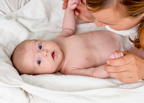 Sen fick jag tips om Blackcurrant Oil från Q for Skin och bestämde mig för att testa den. Succé! Jag smörjde bebisen morgon och kväll i några dagar och i samband med nästa bad tog jag en mjuk borste och skrubbade lite. Nästan allt försvann på en gång, så tacksam!
